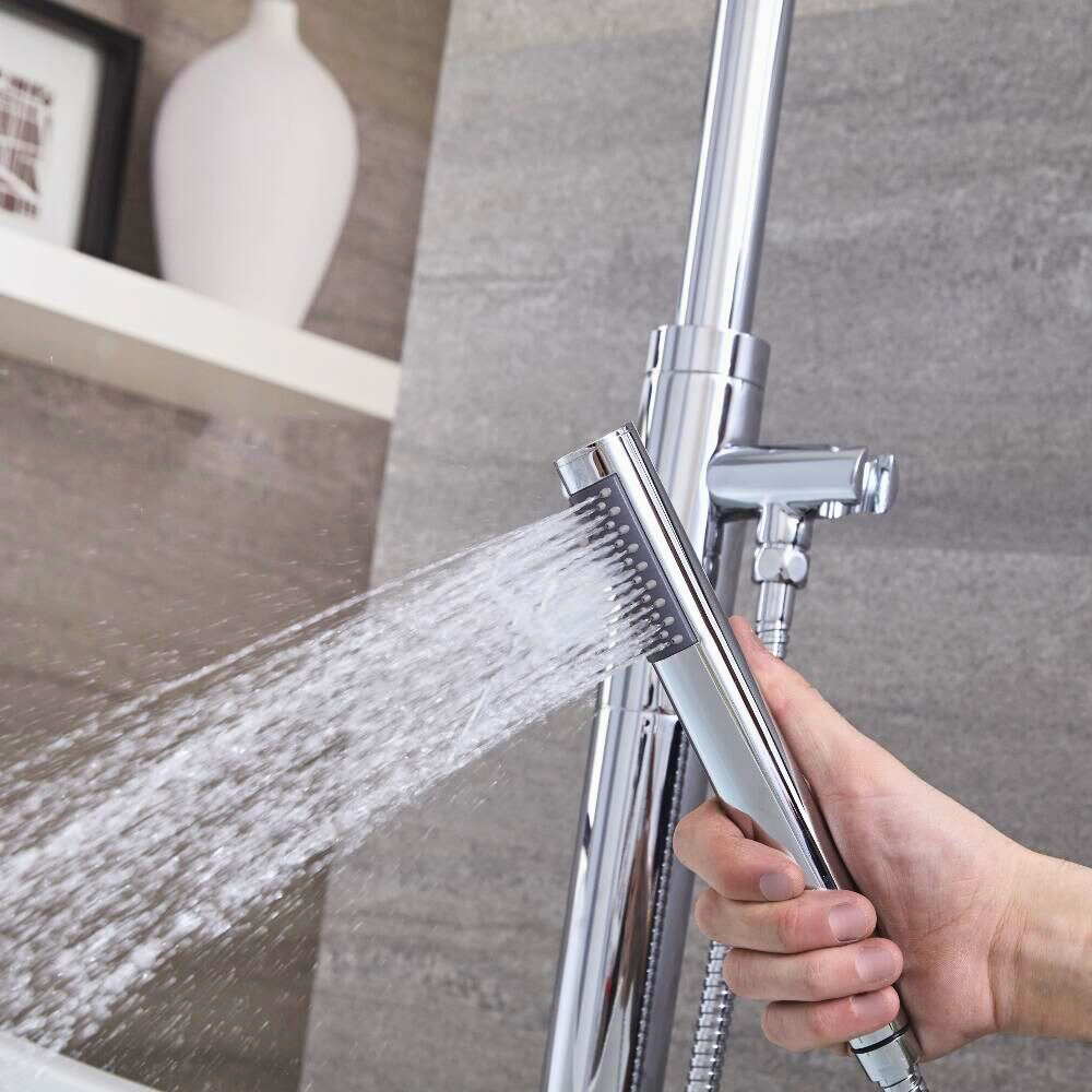 Verhoog uw ruimte met deze prachtige vrijstaande douchemengkraan met een strak vloerstaand ontwerp. Het biedt nauwkeurige temperatuurregeling met één hendel en bevat een handige handdouche voor luxueus spoelen.