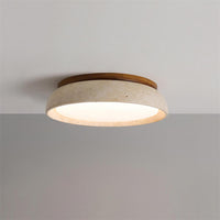 Ervaar de rauwe schoonheid van natuursteen met deze elegante plafondlamp. Gemaakt van echt travertijn en warm hout, brengt het een verfijnde organische textuur en kalmerende ambiance in elk modern interieur.