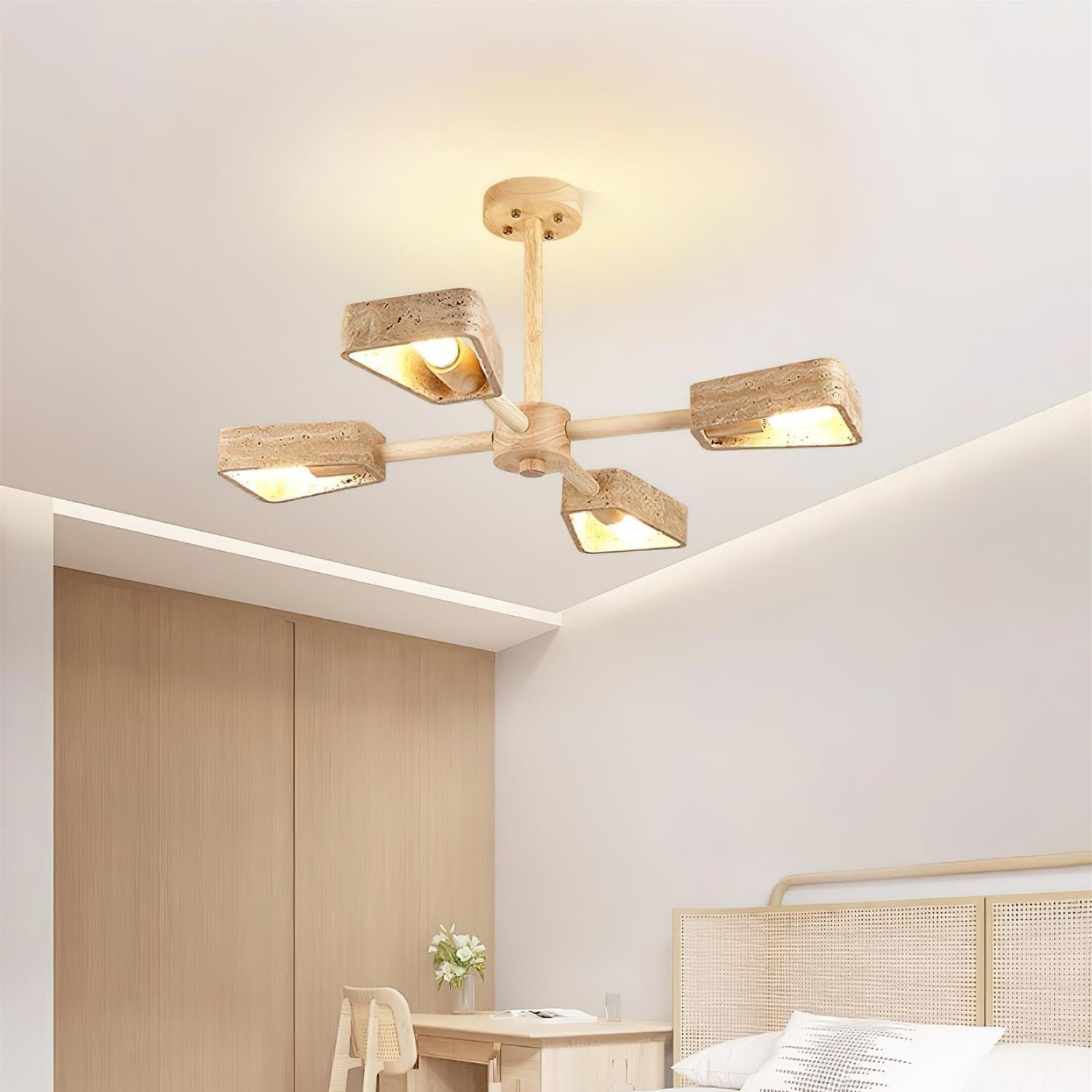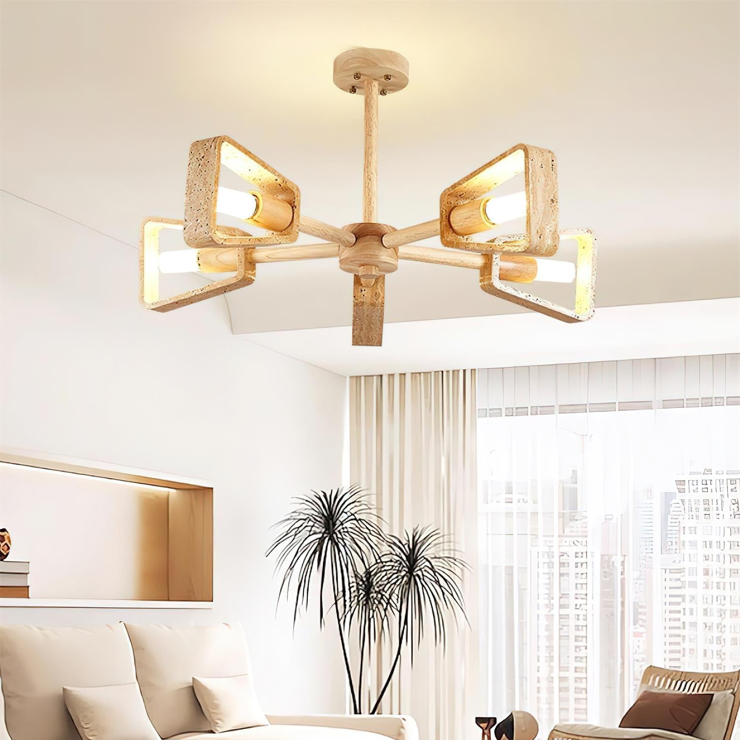 Calidris | Natuurlijke Travertijn Steen Ventilator Silhouet Houten Kroonluchter