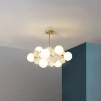 Breng de betoverende schoonheid van de natuur naar binnen met deze prachtige bloemen tak kroonluchter. Met een fusie van geometrische structuren en botanische elementen, biedt het genereuze sfeerverlichting door elegante glazen bollen.