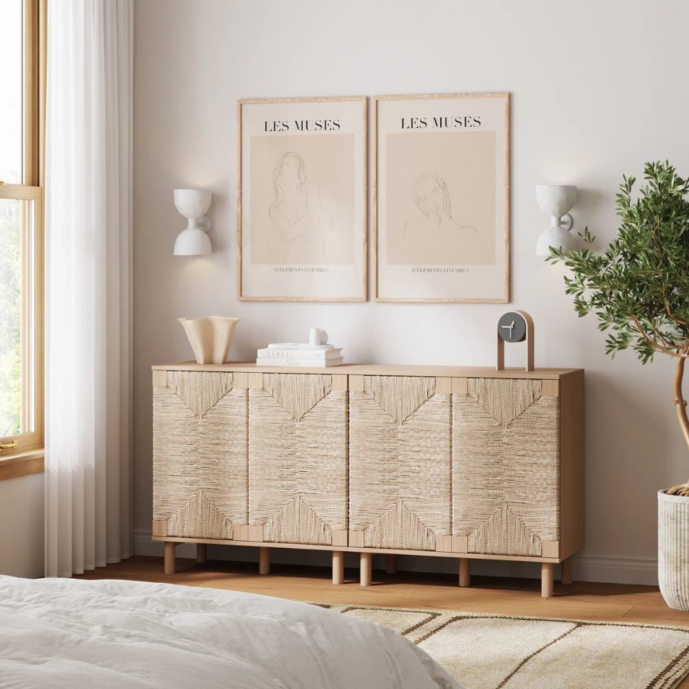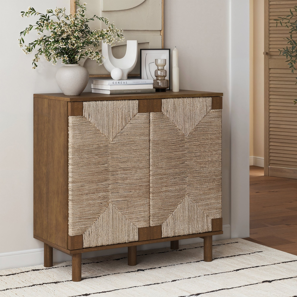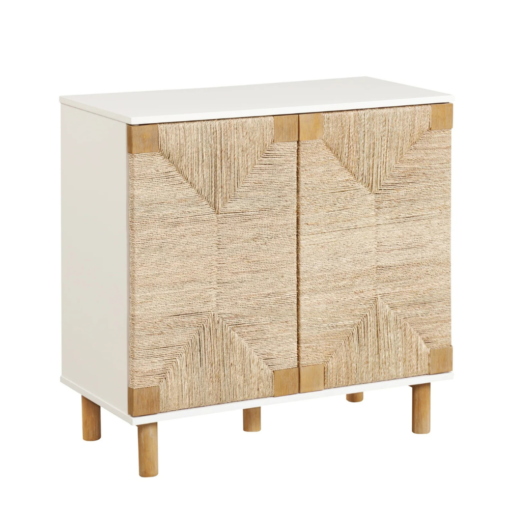 Kori | Twee Deur Houten Opbergkast Met Geweven Zeewierpanelen