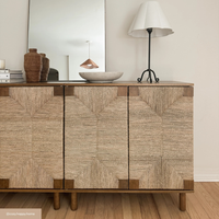 Materialen: Gemaakt van Massief Hout, Geengineerd Hout en premium Houtfineer, met ingewikkeld geweven natuurlijke zeegrasdeuren.