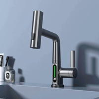 Upgrade uw gootsteen met deze innovatieve slimme wastafelmengkraan, met een ophefbaar lichaam en een temperatuurweergave in real-time. De veelzijdige uittrekbare kop levert rustgevende neerslag of krachtige blaasstralen voor een superieure waservaring zonder batterijen.