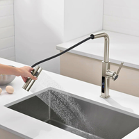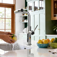 Ervaar de toekomst van keukencomfort met deze slimme keukenkraan met een batterijvrije temperatuurweergave. De veelzijdige uitschuifbare sproeier biedt krachtige boost- en rustgevende watervalmodi voor moeiteloos schoonmaken en vullen.