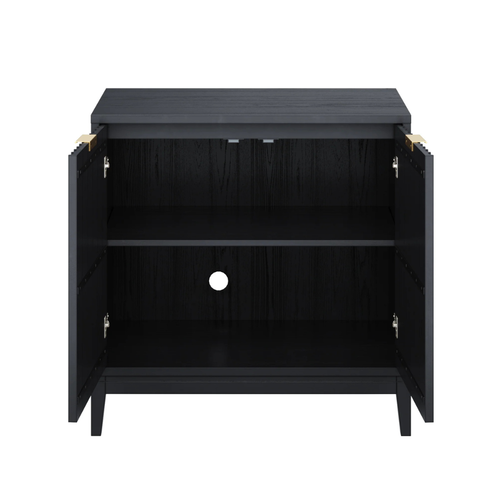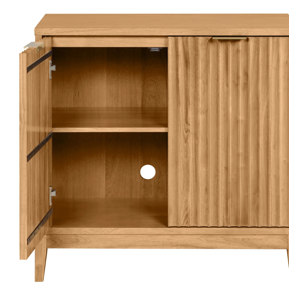 Ontwerp Kenmerken: Toont charmante verticale groeven, een handige toegangsgat aan de achterkant voor kabels om elektronica te beheren, en bevat essentiële anti-kantel hardware voor de veiligheid in huis.