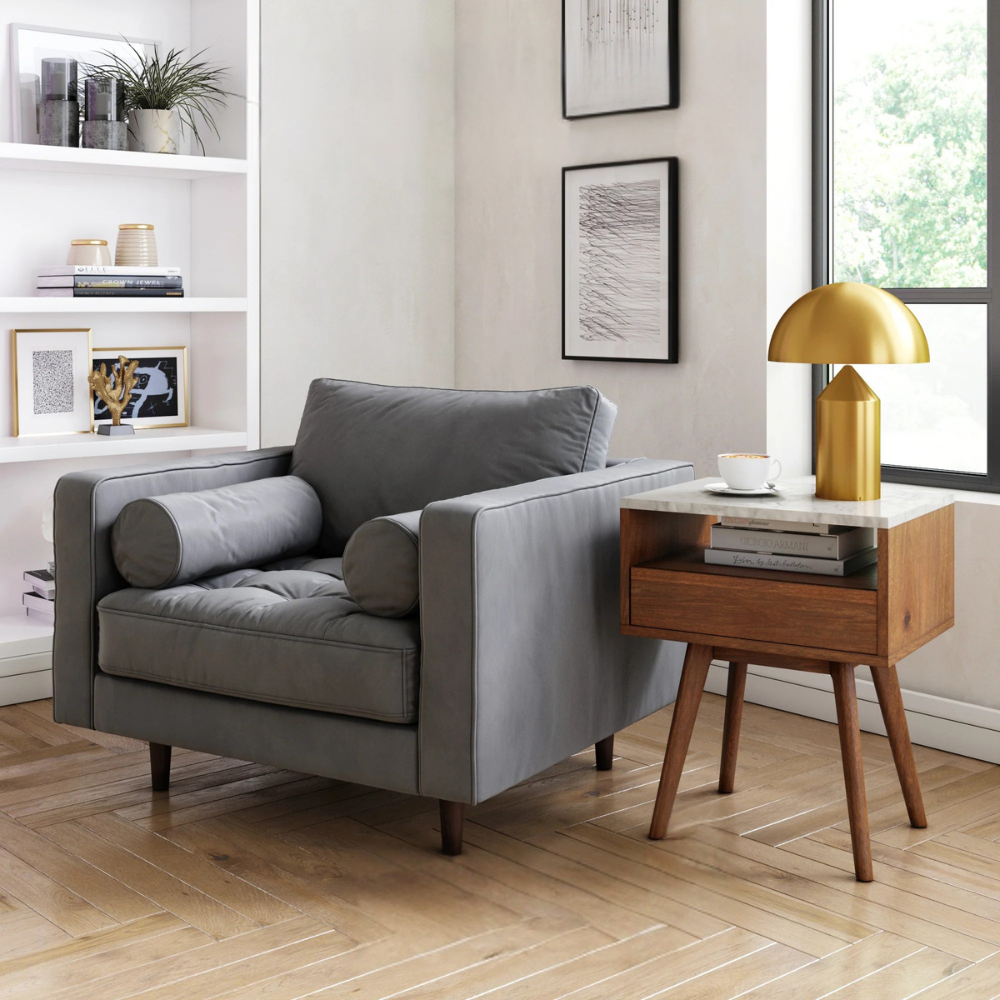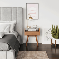 Breng tijdloze stijl uit het midden van de eeuw naar je ruimte met dit elegante nachtkastje en salontafel. Met een faux marmer bovenkant en dubbele opbergmogelijkheden, tilt het elke moderne interieur prachtig omhoog.